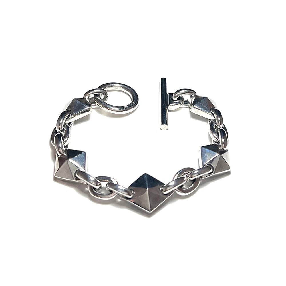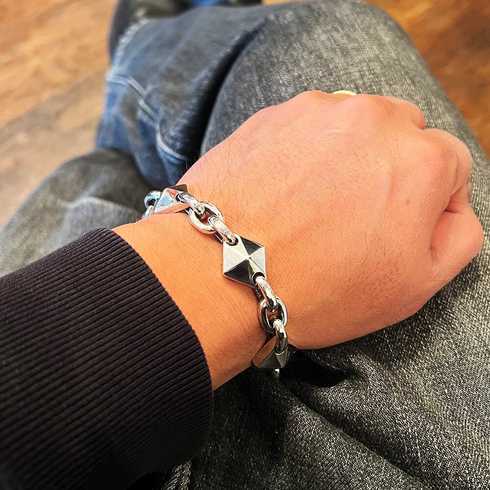 独自の形状を持たせた5個のピラミッド型のリンクパーツがアクセントとなり、着用される方の個性を際立たせます。