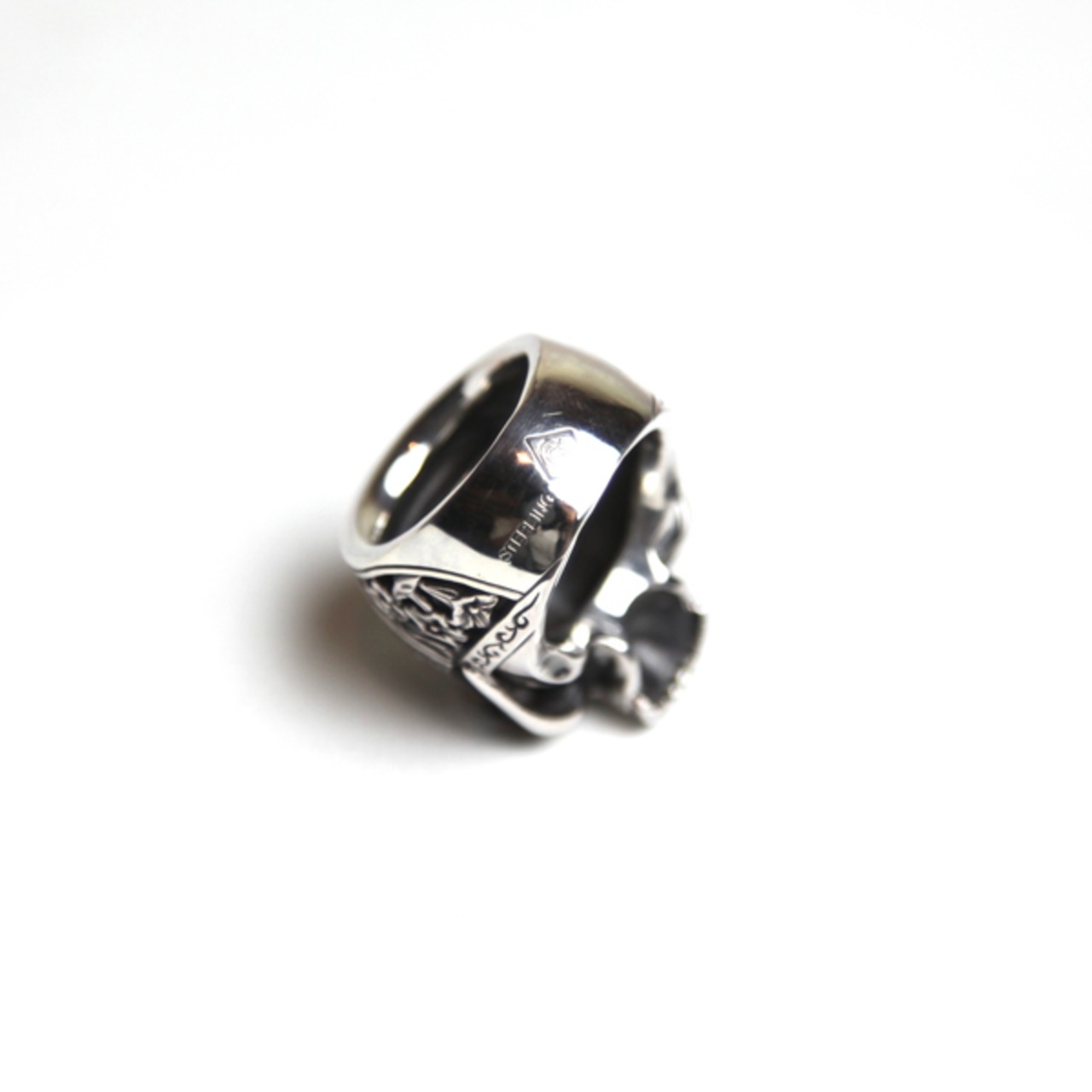 スコットランド女王であったメアリー・ステュアートが所有していたとされる懐中時計をリングへと再構築したもので、死という不可避なものをリマインドする事で、現在を大切にし、人生をより一層楽しむという意味合いを込めて製作されたスカルリングになります。