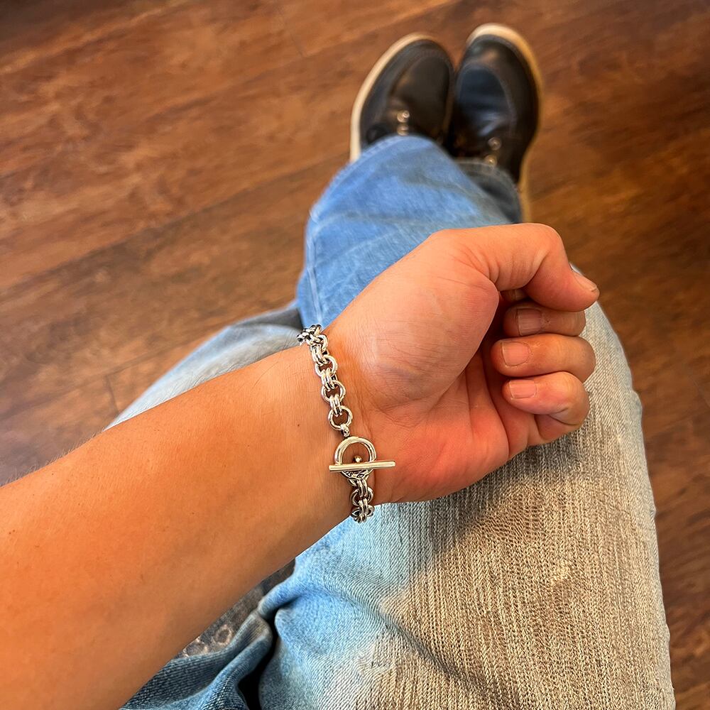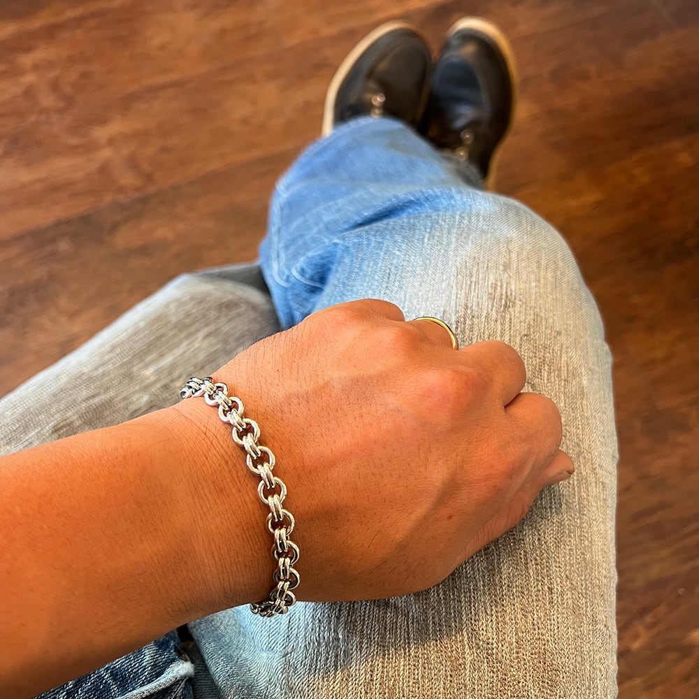 シンプルながらも重厚感漂うデザインのブレスレットになります。