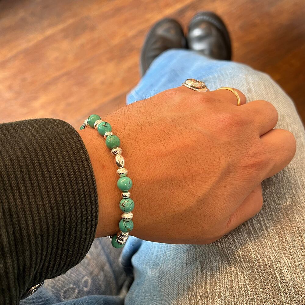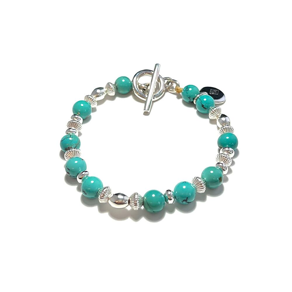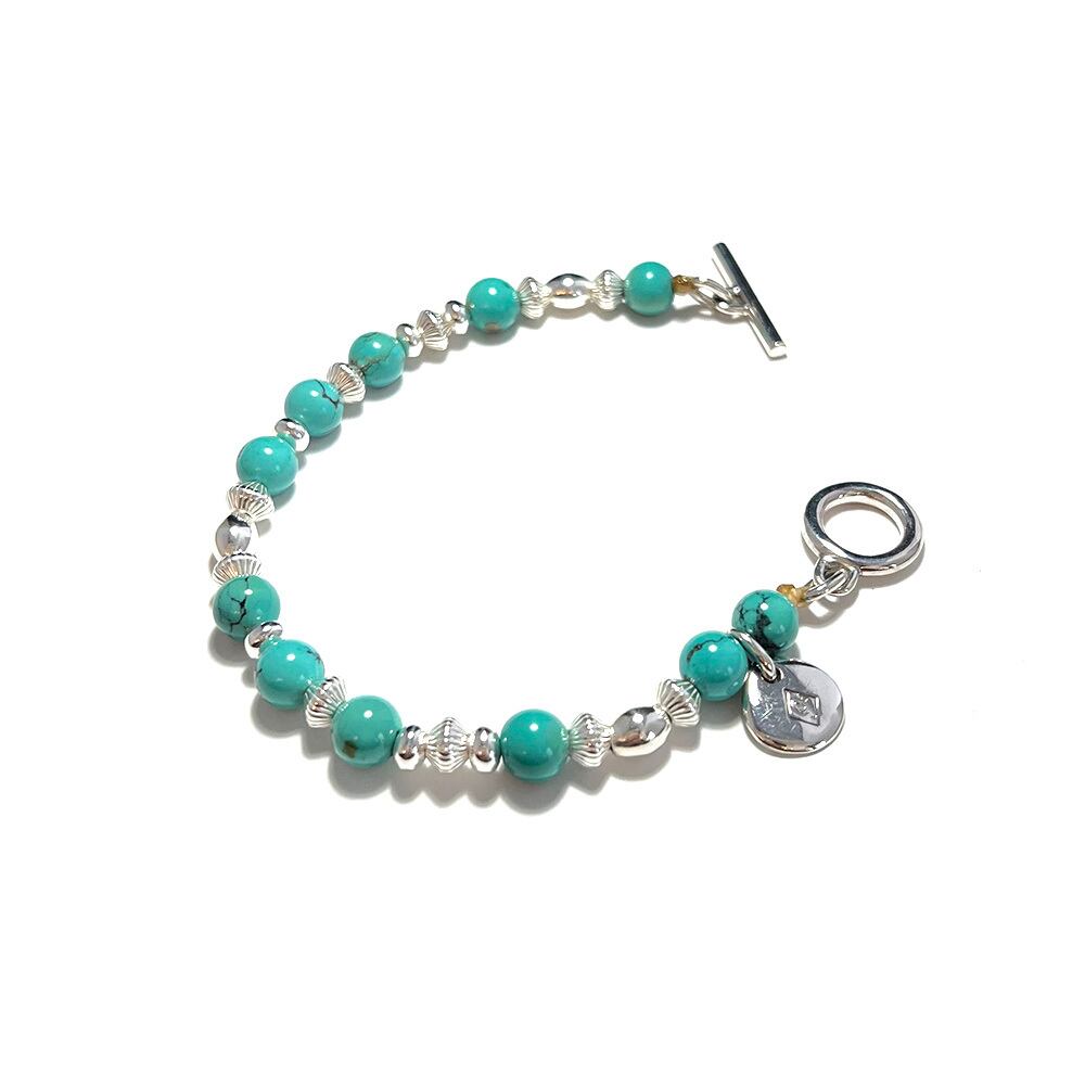 シルバービーズとターコイズビーズのコンビネーションが美しいエレガントなブレスレットです。